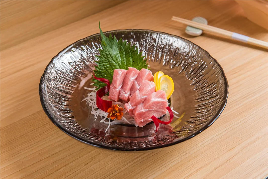 Toro Sashimi 5pcs : Thin sliced of fatty meat of tuna,